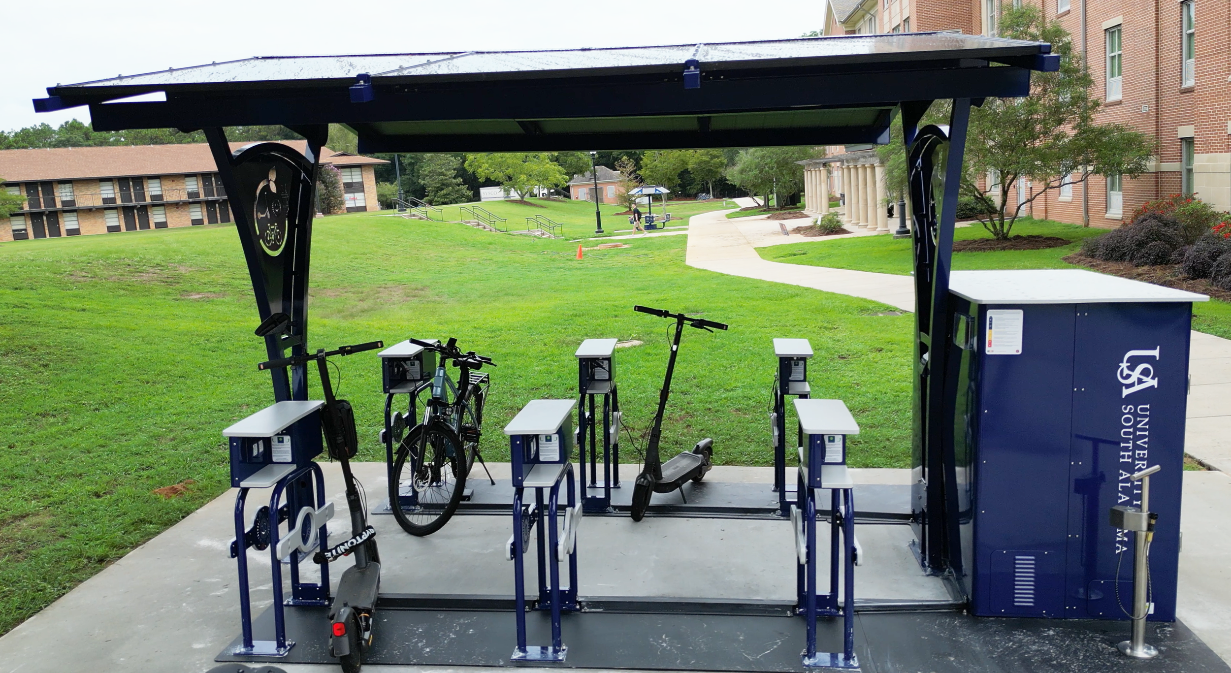 - Modular POD design configurations available. Units can be configured with e-Bike pod(s), e-Scooter pod(s), and e-Skateboard/e-Hoverboard lockers.
