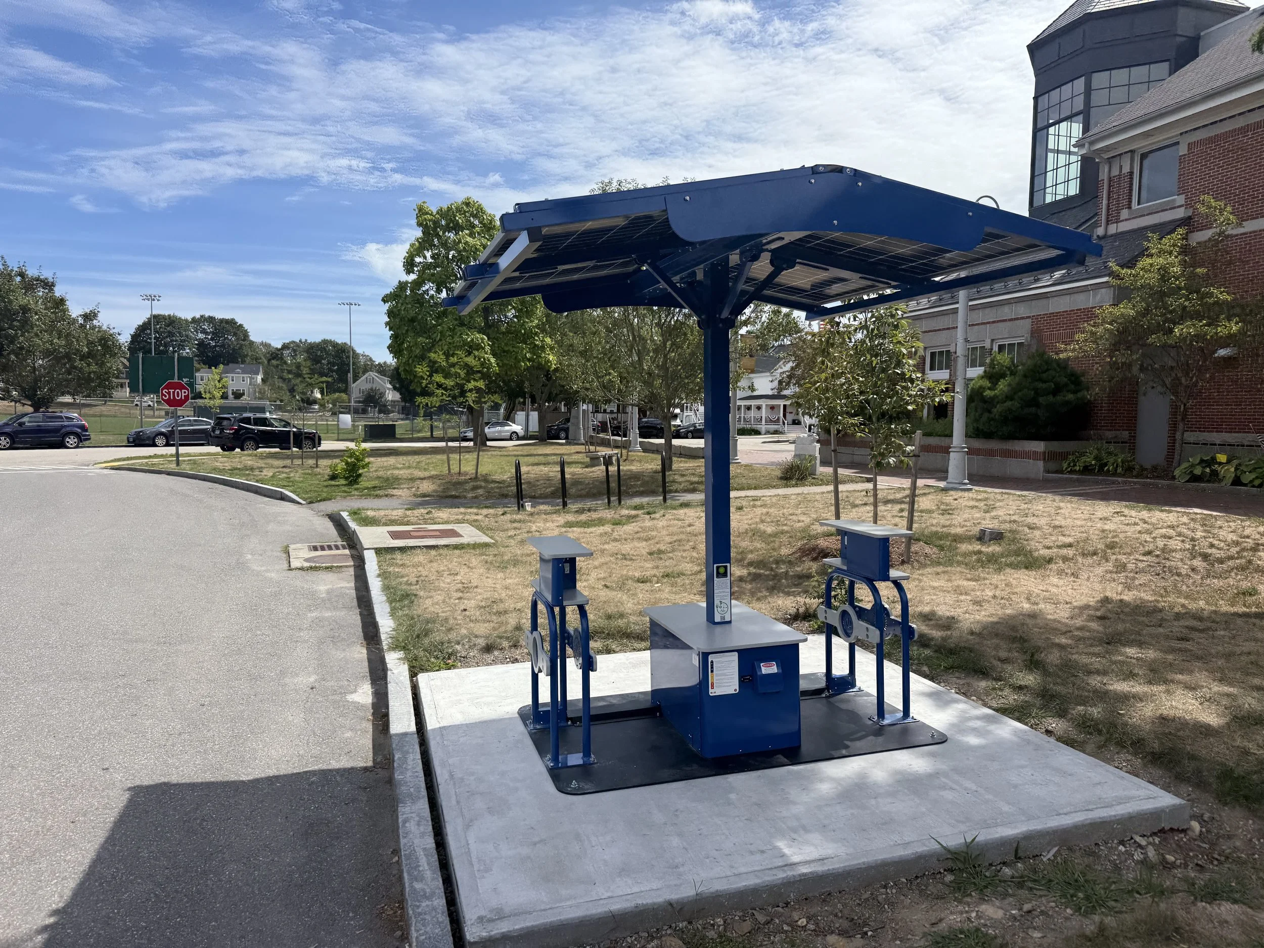 The Phoenix e-Bike and e-scooter charging station has been designed to provide self-sustaining GREEN energy wherever it is placed outdoors with access to direct sunlight. The Phoenix will provide charging and lockable storage for up to four e-Bikes or e-scooters at a time. Phoenix can provide charging day or night. The dimensions of this unit are a perfect fit to place up to two in a standard parking space.